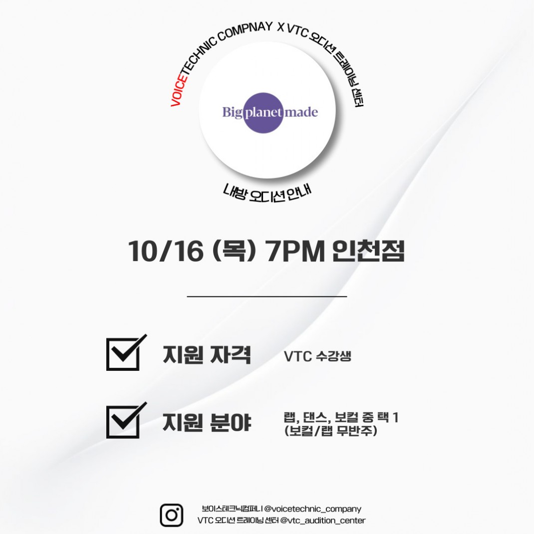 내방 오디션 정보 2025 / 128번째 내방오디션 - 빅플래닛 메이드 2025년 10월 16일 작성자관리자 등록일 25-10-10 조회34회 본문 2025 / 128번째 내방오디션 - 빅플래닛 메이드 2025년 10월 16일 2025 / 129번째 내방오디션 - ATRP 2025년 10월 23일 2025 / 127번째 내방오디션 - 스타쉽 엔터테인먼트 2025년 9월 25일 목록
