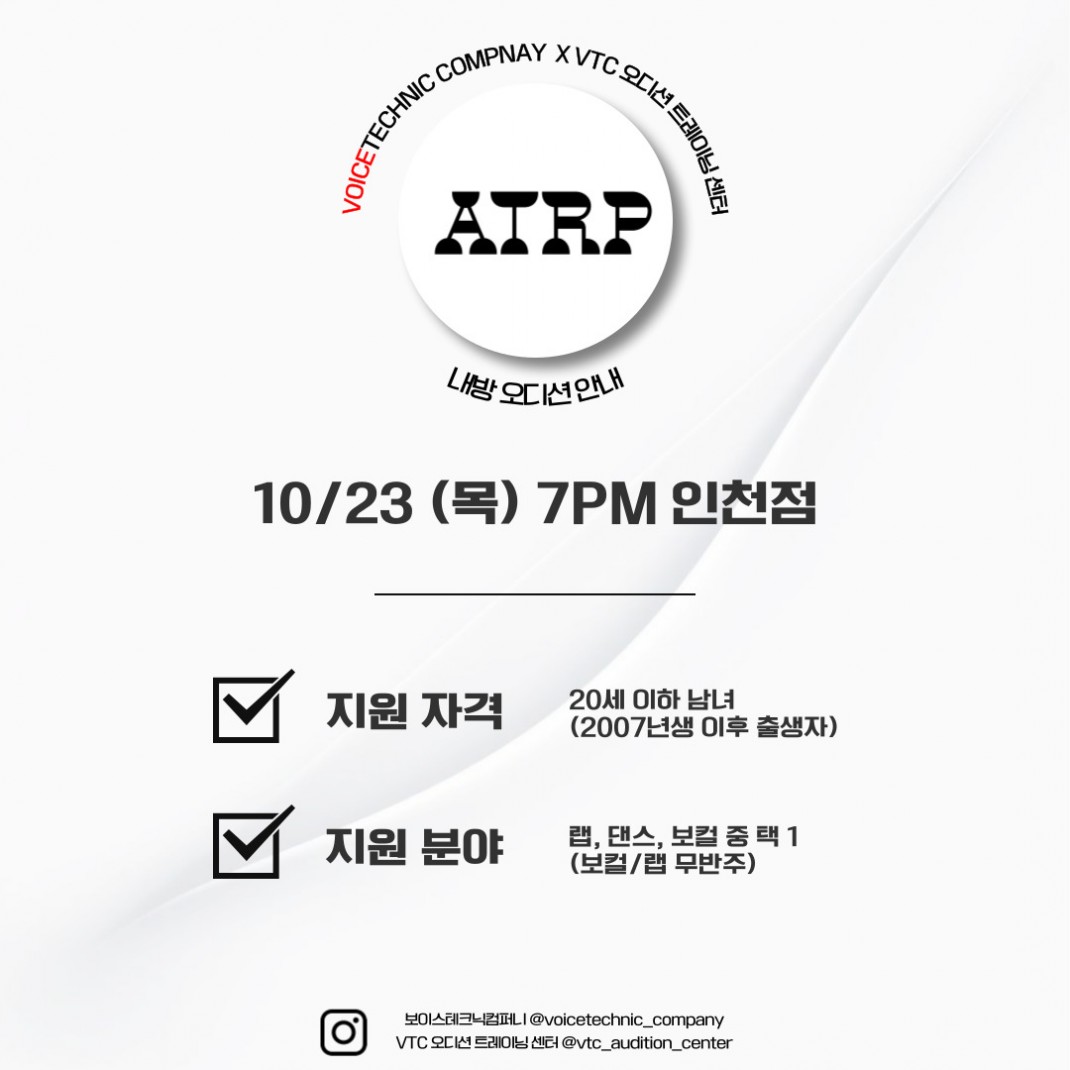 내방 오디션 정보 2025 / 129번째 내방오디션 - ATRP 2025년 10월 23일 작성자관리자 등록일 25-10-10 조회37회 본문 2025 / 129번째 내방오디션 - ATRP 2025년 10월 23일 2025 / 130번째 내방오디션 - 모드하우스 2025년 10월 30일 2025 / 128번째 내방오디션 - 빅플래닛 메이드 2025년 10월 16일 목록